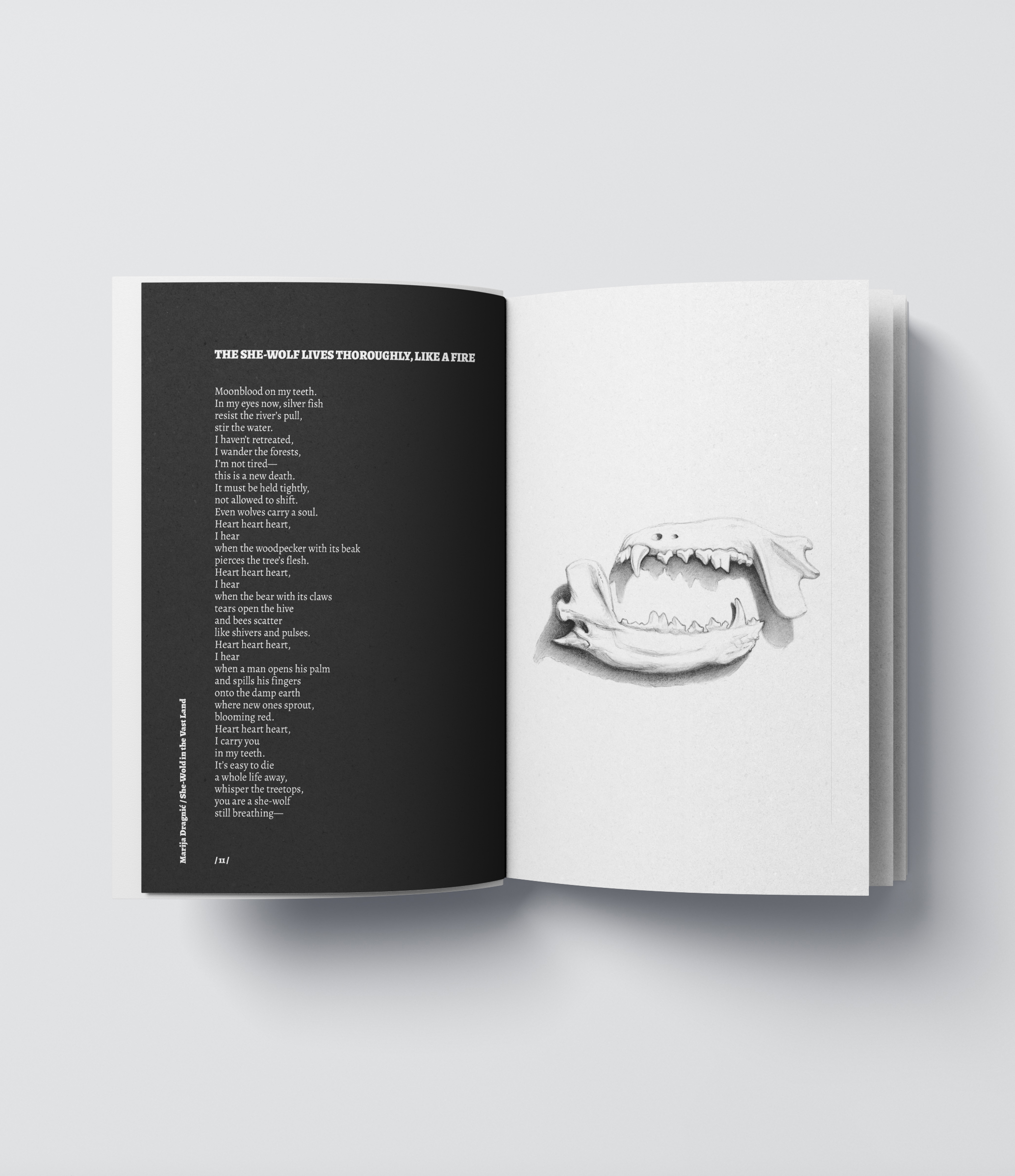 Bilingual poetry collection by Marija Dragnić, enriched with powerful, intuitive illustrations by Natalia Maniaka.